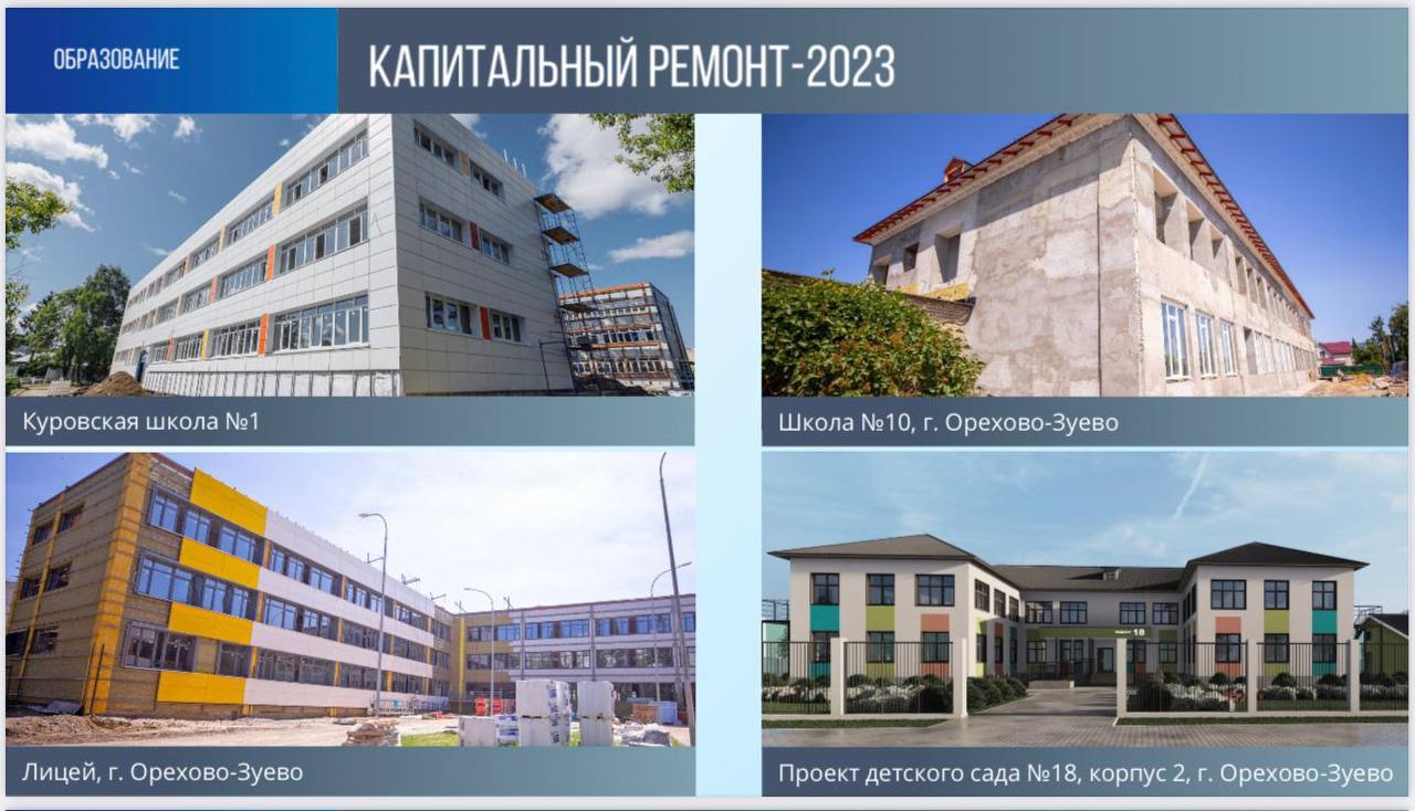 Не может не радовать, особенно тех, у кого есть дети, что в 2023 году будет проведен капитальный ремонт трех школ и одного дошкольного учреждения округа!