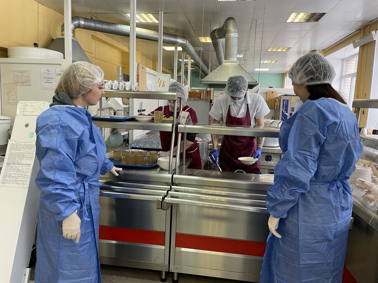 В результате проверки установлено: наличие документов по организации питания, удовлетворительное санитарное состояние столовой, приборы и посуда чистые, персонал столовой работает в СИЗ, соответствие набора блюд фактического меню, удовлетворительные вкусовые качества подаваемых блюд с соблюдением температурного режима.
