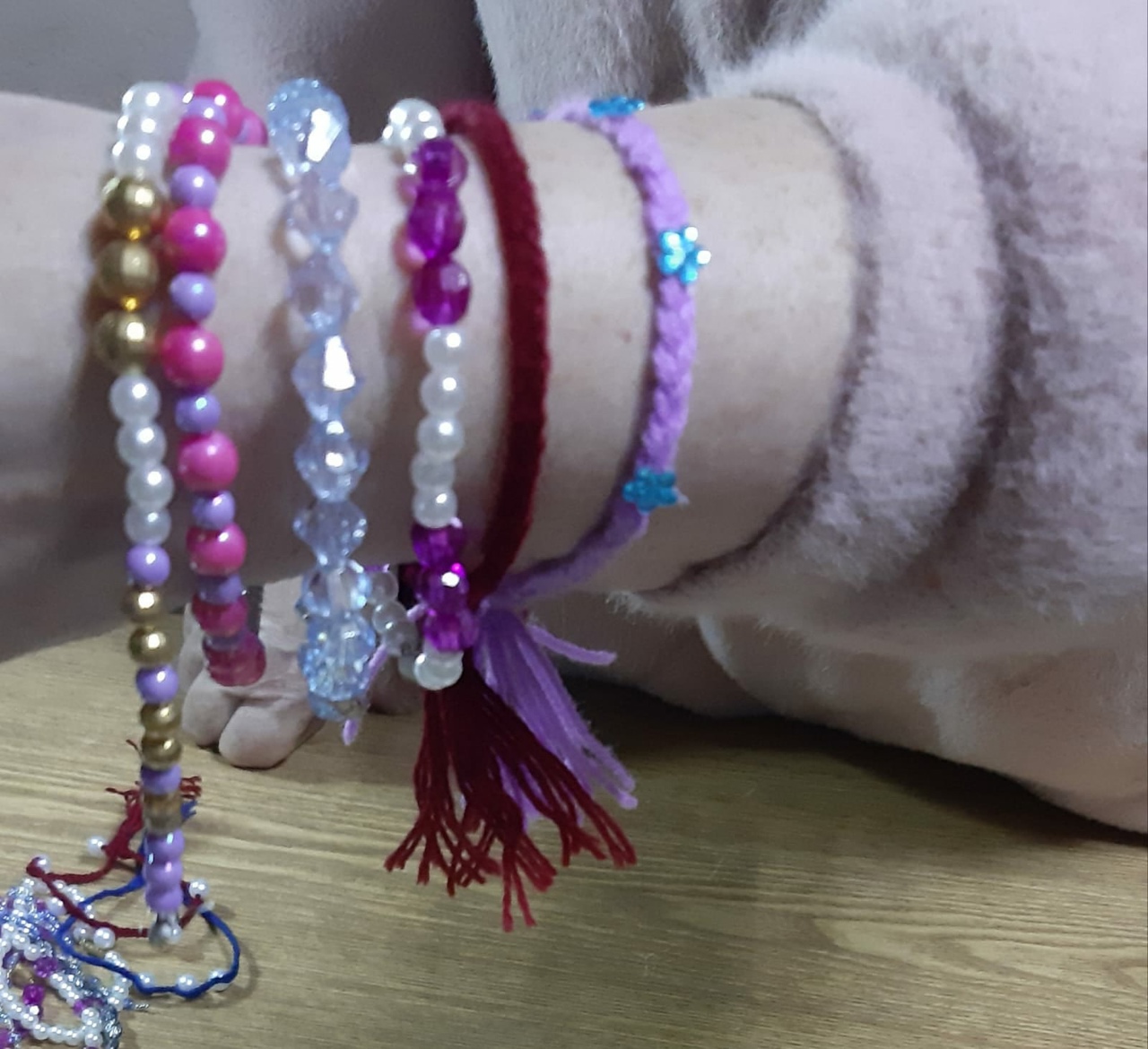 Юные мастерицы изготовили яркие браслеты из бусинок. У каждой получилось уникальное неповторимое изделие.