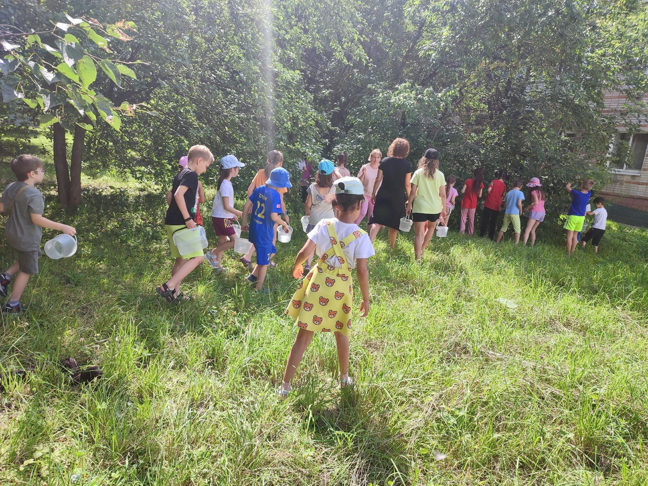 Ребята делали аппликацию «Ежик». Чтобы обеспечить своих зверьков их главным атрибутом – колючками, – каждый взял ведерко и отправился в сад собирать материал для работы.