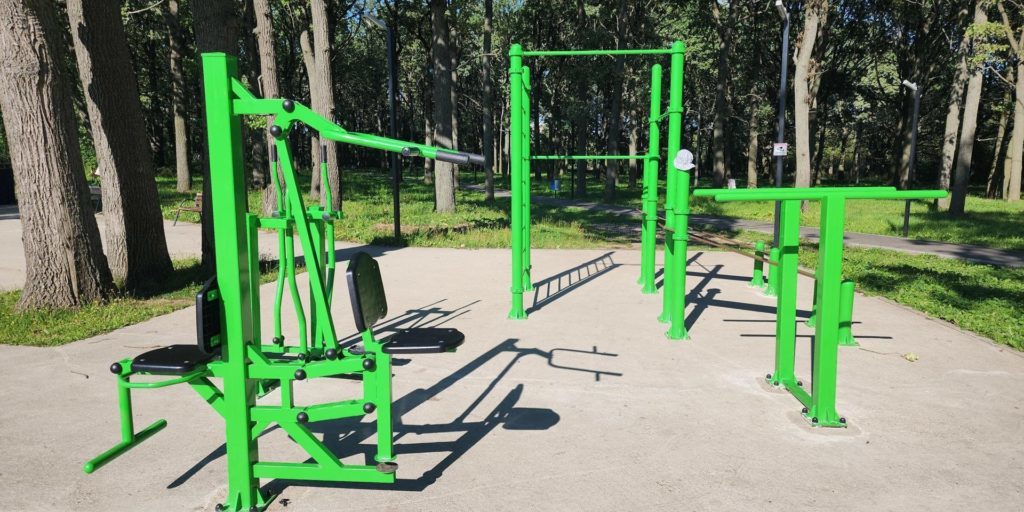 На спортивной площадке парка «Дубовая роща» в Кашире установили тренажёры