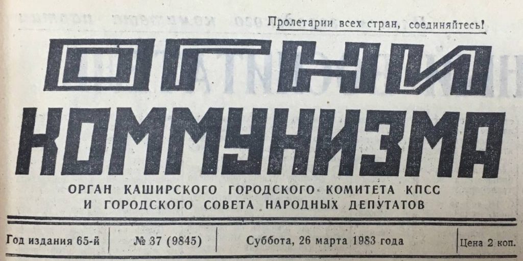 На первой полосе газеты «Огни коммунизма» с гордостью расположились заметки о тружениках Каширской земли.