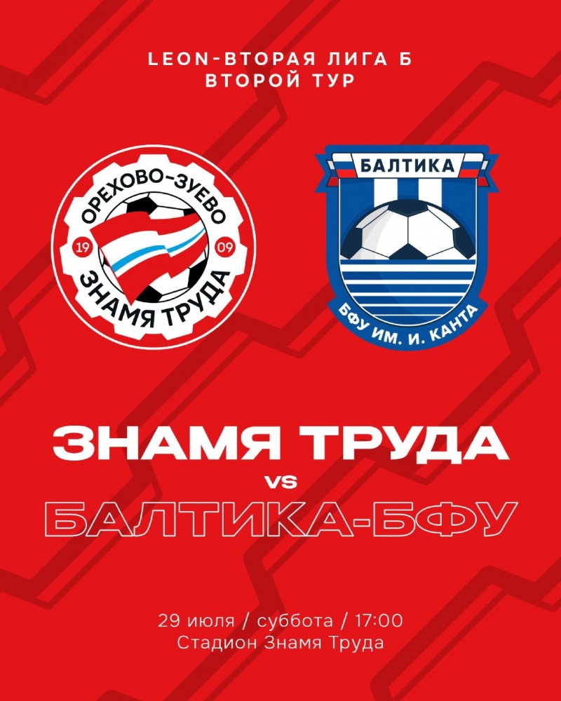 Команда «Знамя Труда» сразится с командой «Балтика-БФУ».