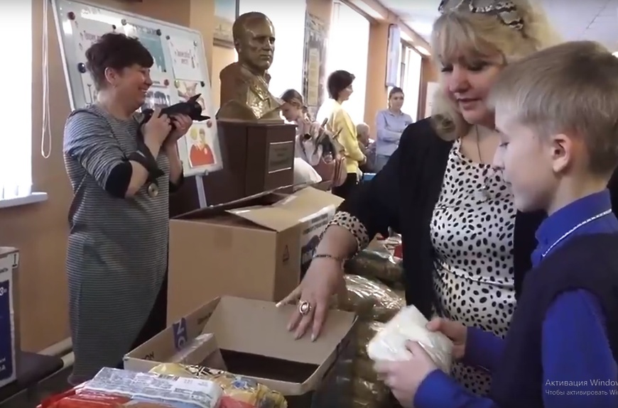 Детсадовцы, школьники, их родители и педагоги несли в лицей продукты питания, медикаменты, письма, поделки.