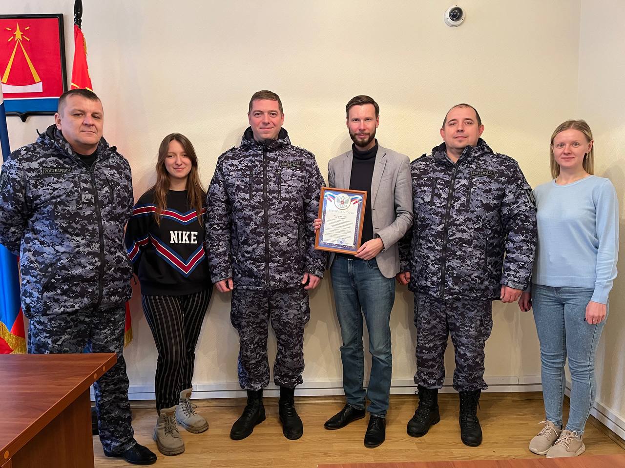Сотрудники Росгвардии вручили благодарность, а также поблагодарили за сотрудничество в информационной поддержке, освещении служебной деятельности сотрудников Росгвардии, направленной на обеспечение общественного порядка и безопасности.