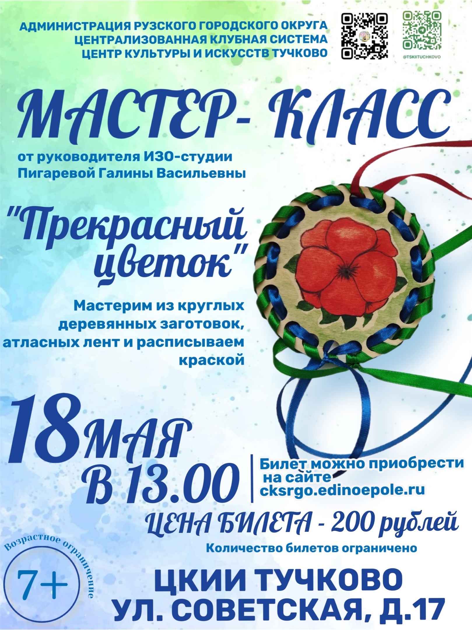 18 мая в Тучковском центре культуры и искусств Рузского городского округа состоится творческое занятие.
