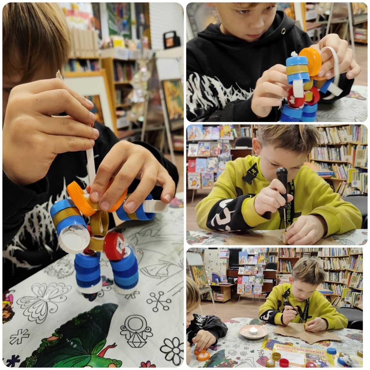 Вот какого красавца смастерили в игротеке-мастерской «Фантазеры» в Дороховской детской библиотеке. Тема «Роботы» этой зимой очень популярна в Библиоклубе. «Рецепт» симпатяги из крышечек нашли в журнале «Самоделкин». Но ребята умеют и самостоятельно конструировать, и изобретать. 17 января отмечается День детских изобретений. После творчества, принялись за любимую настольную игру.