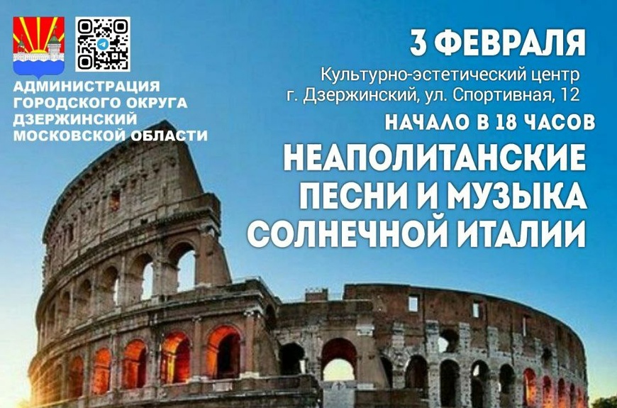 Здесь пройдет концерт, посвященный музыке прекрасной и загадочной Италии. Не зря говорят: чтобы почувствовать душу города, нужно услышать его песни. А неаполитанские песни – это всегда ода радости, солнцу, морю и красоте.