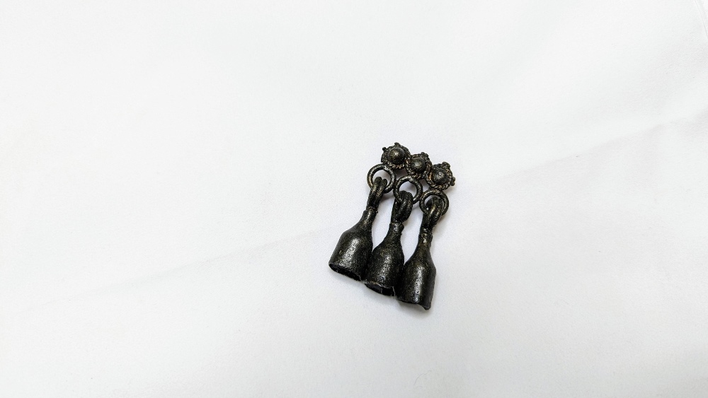 Среди них предметы вооружения – засапожные ножи и наконечник рогатины, а также бытовые предметы – ножи, ключи, украшения. После удаления следов коррозии, загрязнений стали видны изначальные формы и пропорции предметов. Например, оказалось, что сундучные ключи были инкрустированы медью!