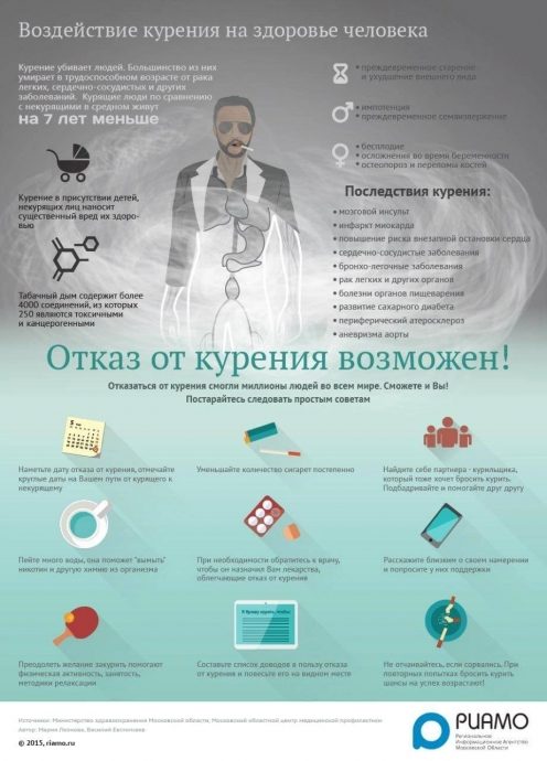 — зависимость: привыкание к табаку происходит постепенно. В течение полугода курильщик увеличивает количество выкуренных сигарет. После года курения появляется привыкание и бросить курить самостоятельно практически невозможно.
